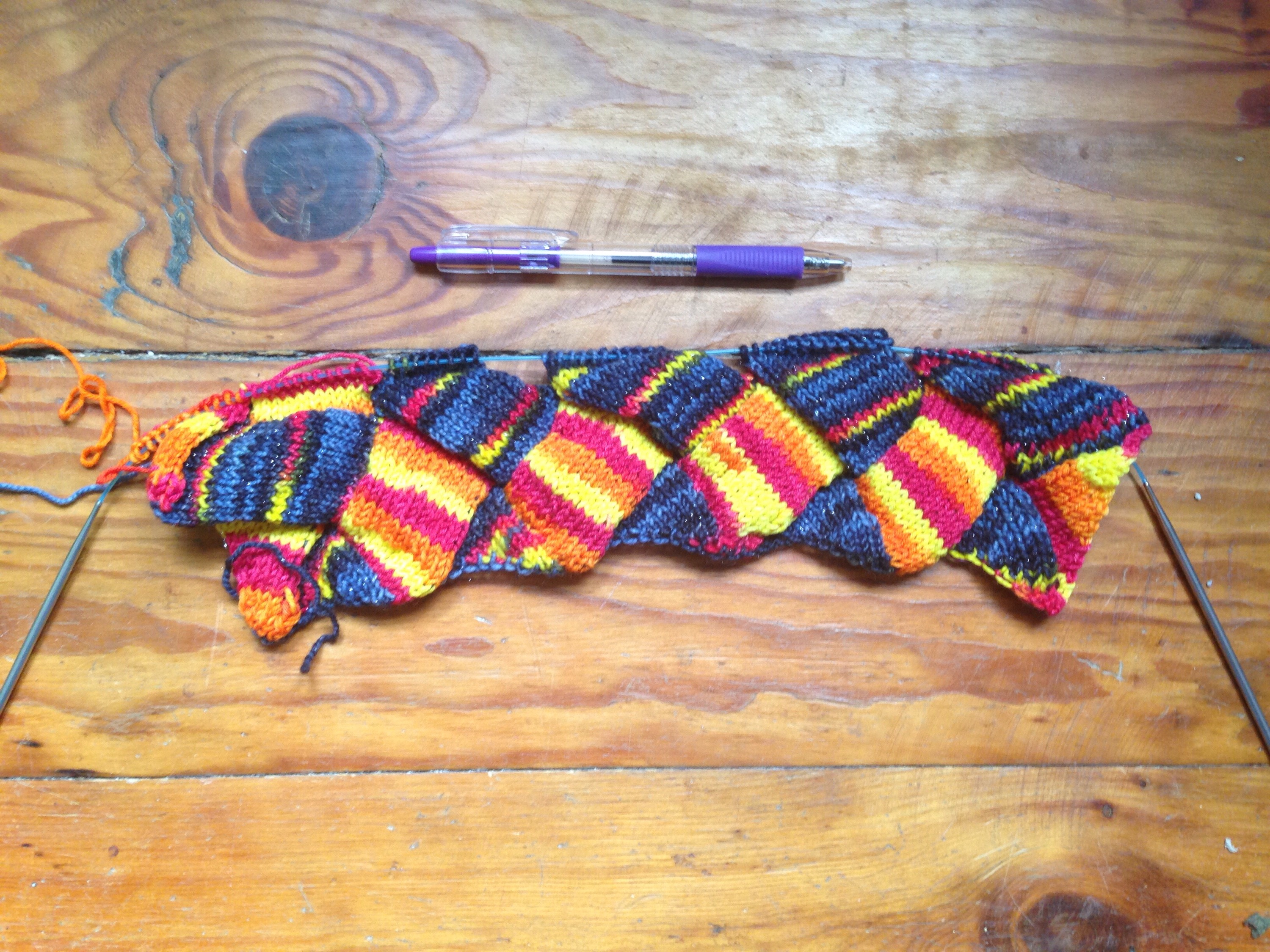 It’s making me care about knitting again! I haven’t worked on it in a couple weeks, but here’s my entrelac scarf πŸ˜€